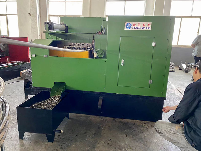 Stainless Steel Nut Formerin toimintaperiaate on, että moottori ohjaa sisäistä muotia toimimaan. Aseta metalliraaka-aine syöttöaukkoon, kone lähettää raaka-aineen automaattisesti muottien väliin, ja sitten muotti lävistää nopeasti, puristaa raaka-aineen mutterin muotoon ja puristaa langan samanaikaisesti.